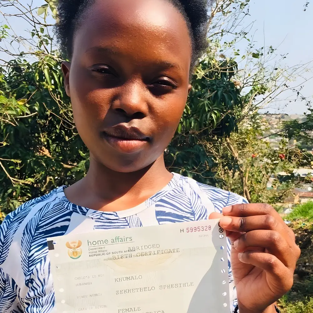 In July 2025, after persistent engagement from our team, the Department of Home Affairs finally called Siphesihle for her long-awaited interview. On 15 August 2025, she received her birth certificate.